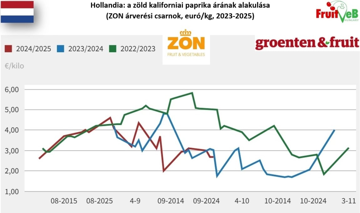 A 2025-ös év komoly kihívások elé állította a holland paprikatermesztőket. Míg a 2023-as és 2022-es szezon kiemelkedően sikeres volt, az idei évben a kínálat jelentősen megnőtt, ami az árak drasztikus csökkenéséhez vezetett. A téli időszakban a poeldijki FV Seleqt vállalat Spanyolországból és Marokkóból importált paprikát. Stef Odenkirchen termékmenedzser szerint Marokkóban vírusfertőzések miatt a piros színű paprika mennyisége jelentősen visszaesett, ami februárban az árakat 10,00 euró/kg (3900 Ft/kg) fölé emelte. Az importidőszak március végén lezárult, és április elejétől már fokozatosan holland és belga termékek kerültek a piacra.