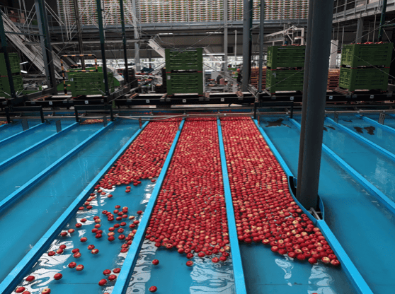 A gépi válogatást a Greefa 26 csatornás GeoSort berendezésével végzik, színre és méretre válogatnak, vevői igény szerint. Az almát 6-12 °C hőmérsékletű, aktív klóros vízzel mossák, a víz saját kútból származik. A használt vizet három lépésben szűrik, először mechanikai-, majd homok- végül aktív szenes szűrőkön megy át. Az így visszaforgatott víz sokáig használható, 8-10 hónapig teljesen mentes a mikróbáktól. Ezt rendszeres vizsgálattal ellenőrzik.