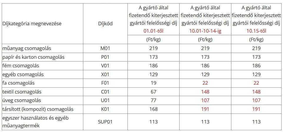 Érdemes figyelni rá, hogy ha keletkezett év közben kötelezettség a csomagolástól eltérő más termékáram kapcsán is, akkor annál ugyanúgy negyedévente kell vallani, mint eddig, mert a többi termék- és anyagáramra nem vonatkozik a választási lehetőség. Ne feledkezzenek meg róla, hogy a díjtételekre vonatkozóan évközi jogszabályváltozás volt: néhány díjkategóriában emelés történt, így oda kell figyelni a megfelelő időszak kiválasztására.